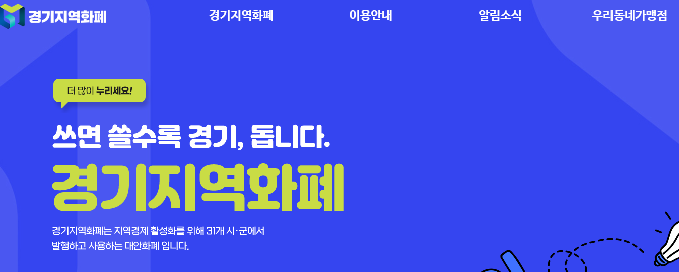 경기도 청년 지원사업, 청년기본소득, 원자 시금 지원사업 등 경기도 시행하는 지원사업의 대부분이 경기 지역화폐로 지원되기 때문에 지원자는 해당 어플이 필요하며 경기지역화폐에 가입해야 지원이 가능하다